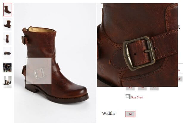 Adding functionality to your photos can also help, and along with the standard “click to enlarge” option you can look at offering Zoom/Magnifying functionality which allows people to zoom into an image on mouseover and view the finer details of a product. It is also relatively easy to setup with most eCommerce systems.