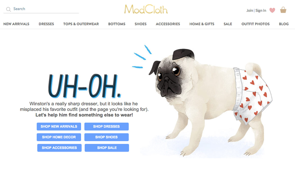 For example, here’s how Modcloth handles their 404 page: