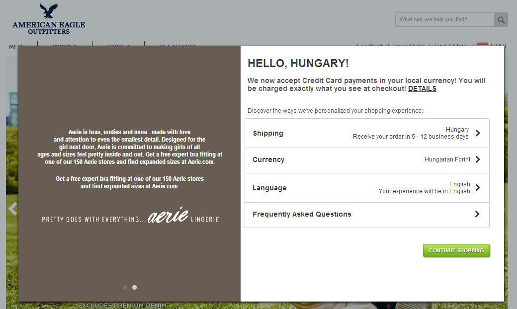 As you’re unlikely to have as many web developers and as much cash in your war chest as Amazon, I’m not recommending you instantly try and set up the most advanced personalisation system on the planet. Start small and build from there, as there is plenty you can do that requires a small amount of development work. For example, implementing popups based on a visitor’s country and informing them how ordering and shipping works in their country, or gathering their email address for future use if you don’t ship to their country: